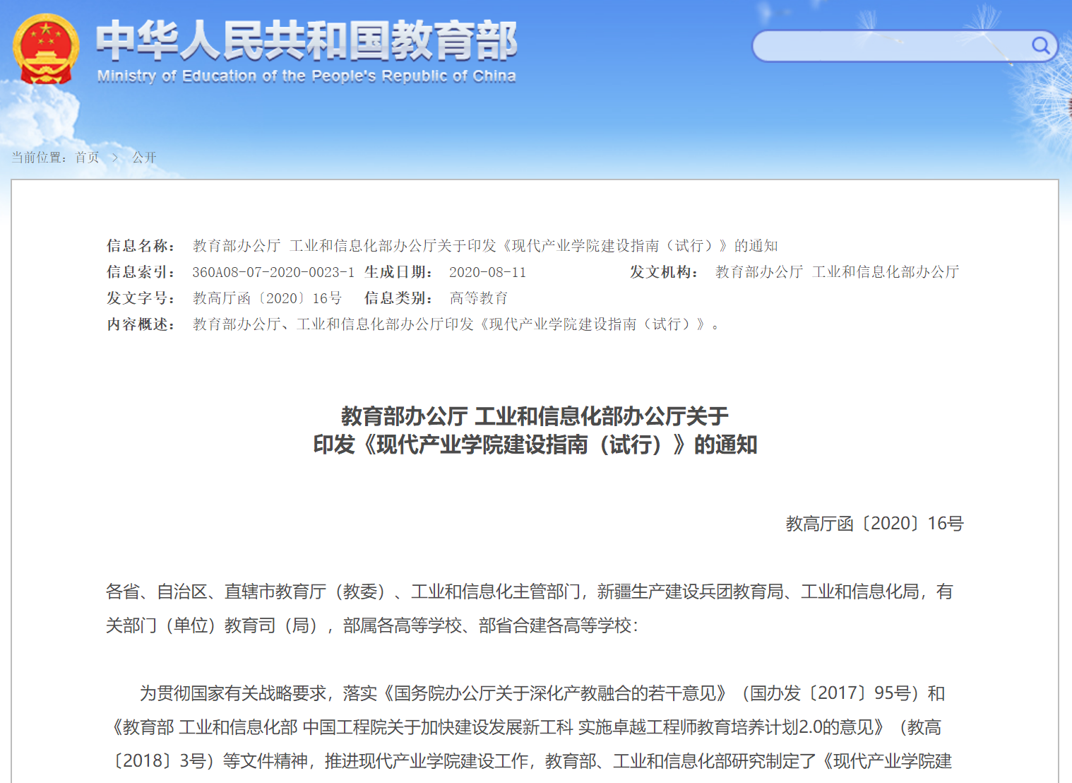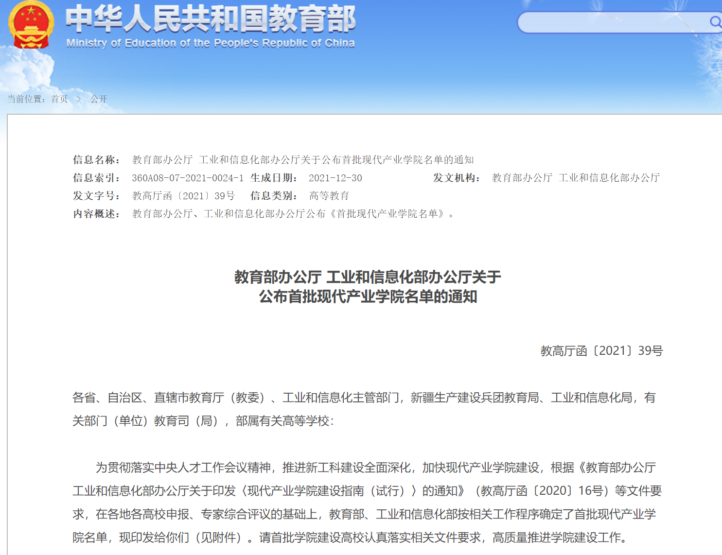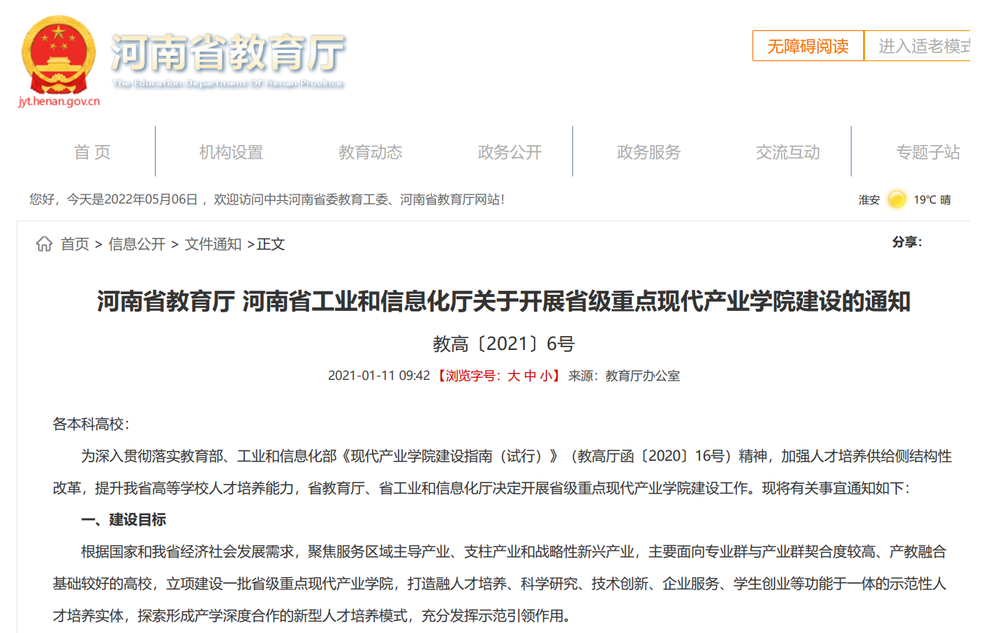 河南省教育廳建設產業學院通知