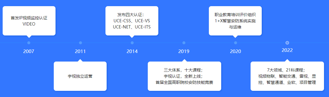 宇視作為教育部遴選的第四批“1+X”培訓評價組織,是相關職業技能等級證書及標準的建設主體,對證書質量、聲譽負總責,主要職責包括標準開發、教材和學習資源開發、考核站點建設、考核頒證等。